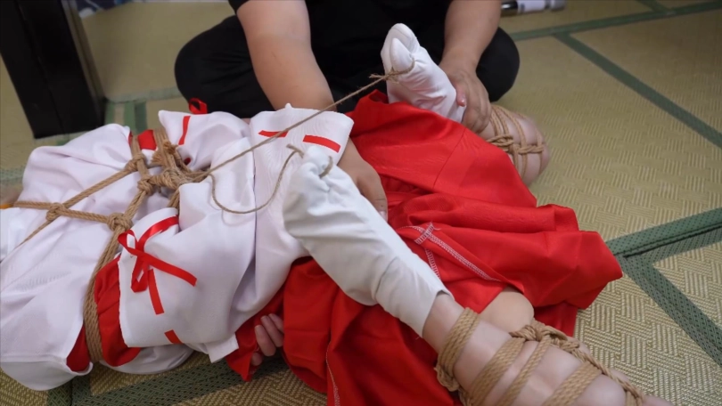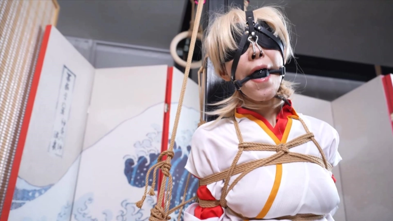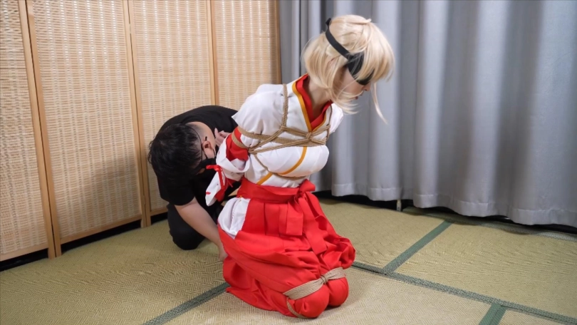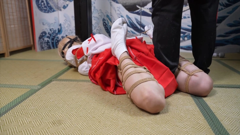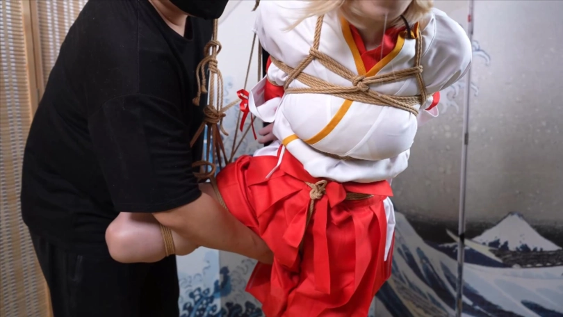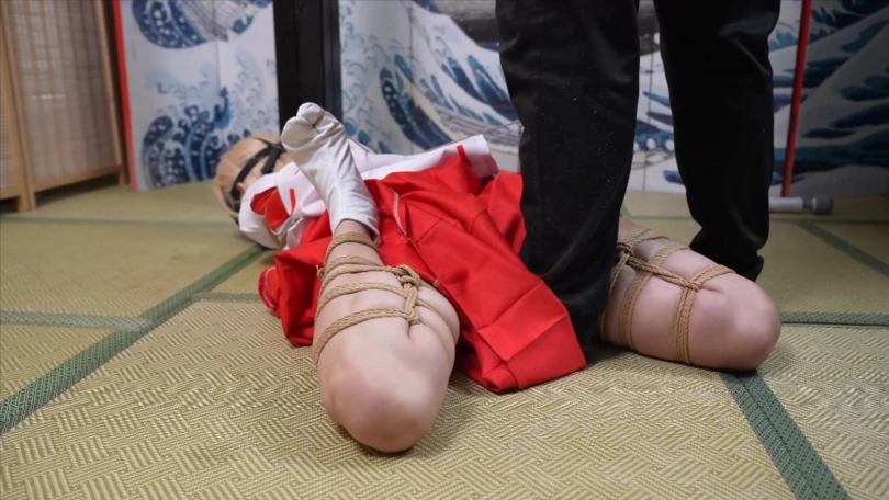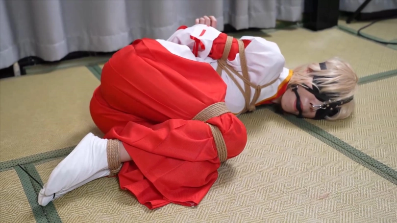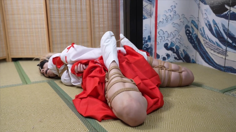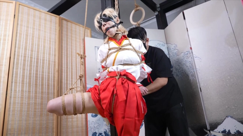 【象人】4K 嗷嗷-cos巫女花散里(npc)马具口塞,鼻勾,折腿缚,细绳扯脚趾