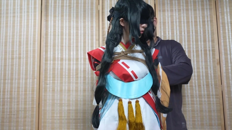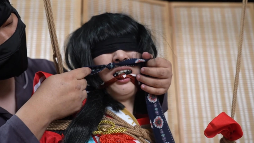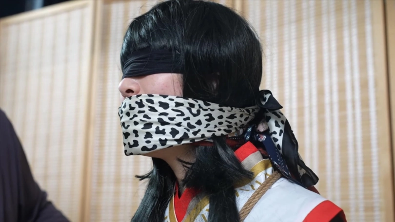 【象人】多重堵嘴!嗷嗷-cos八百比丘尼,单脚吊,扯脚趾,TK,抽打屁股,多重丝巾堵嘴!