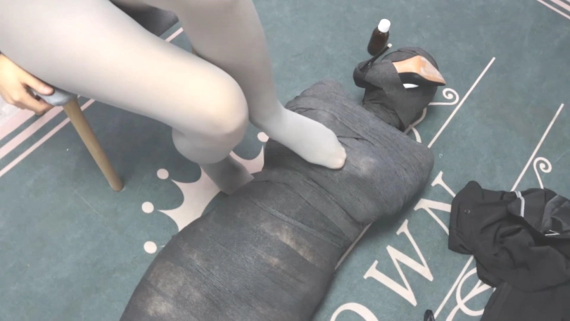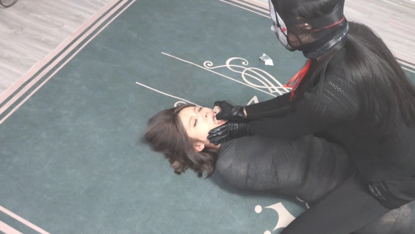蒙面女人将女主囚禁在家中的衣柜里,外出归来后准备短暂释放她,没想到女主准备趁机唤醒siri求救,结果被抓了个正着,于是蒙面女人为了防止她再逃跑并惩罚她用上了木乃伊全包,玩到最后发现女主没了动静,以为出事了就解开了她身上的束缚,结果女主趁机捂晕反杀蒙面女并捆绑