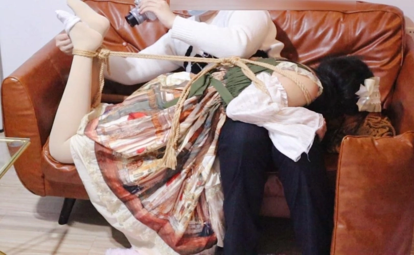 洛丽塔公主双手捆吊在梁上接受欺负和揩油与痒刑处罚 驷马脱公主鞋再脱白Lo袜再脱肉丝欺负的痒刑