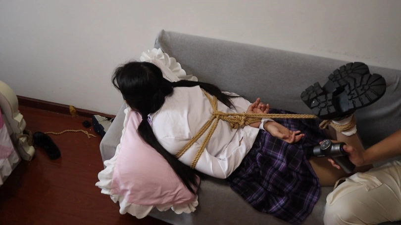 【荷仙少女】双视角 美美自拍后被抓起调教的安安姐姐,绳子死死绑住的敏感双马尾的姐姐直接被欺负到求饶的真实反应,哪怕碰一下都极度敏感 都这样了嘴上还在逞能!说不怕痒和震,但真的用上身上却立马换了一副嘴脸