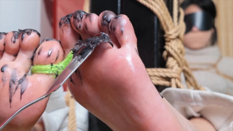 【象人】虐足!04朝朝-虐足专场,牙签,滴蜡,涂油,脚趾绑在一起的小脚丫真好玩!