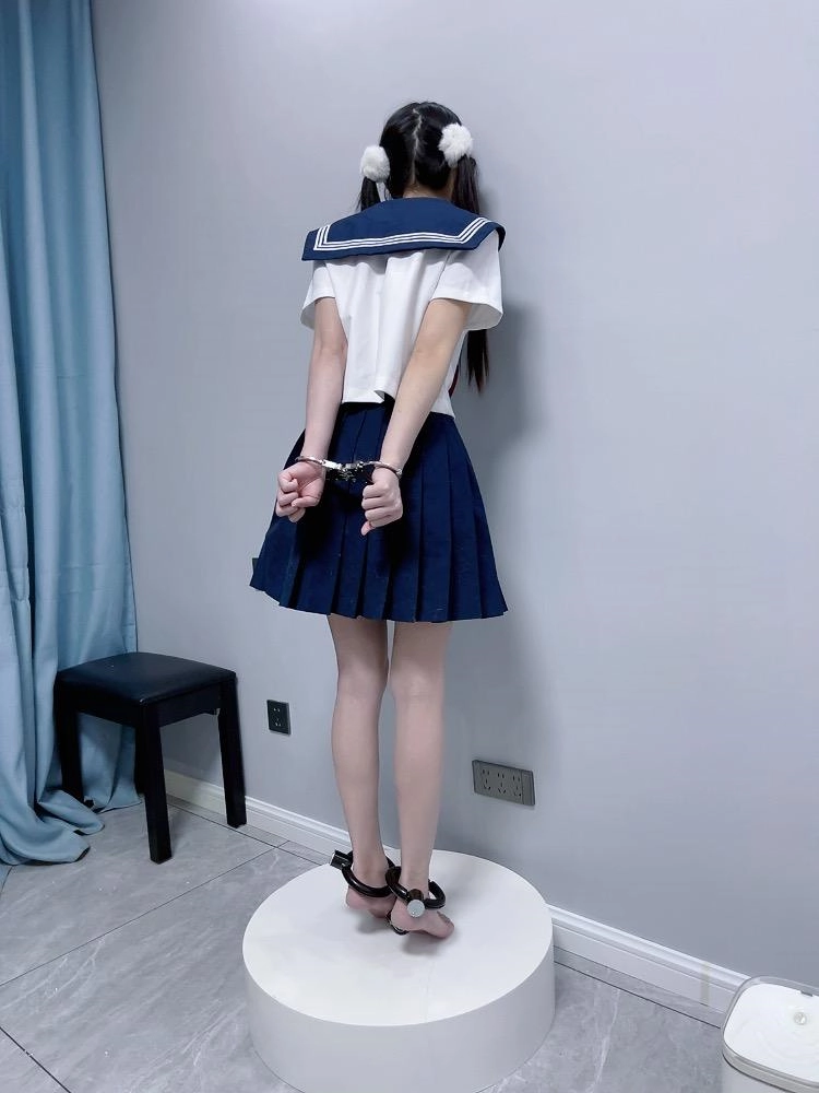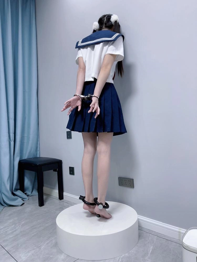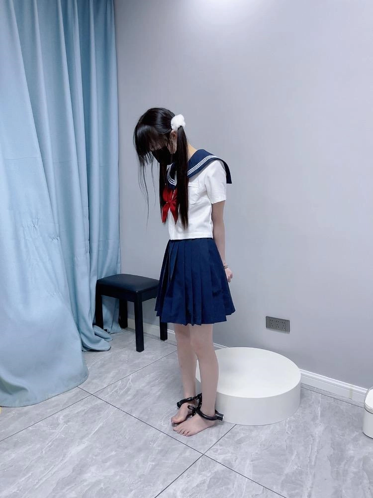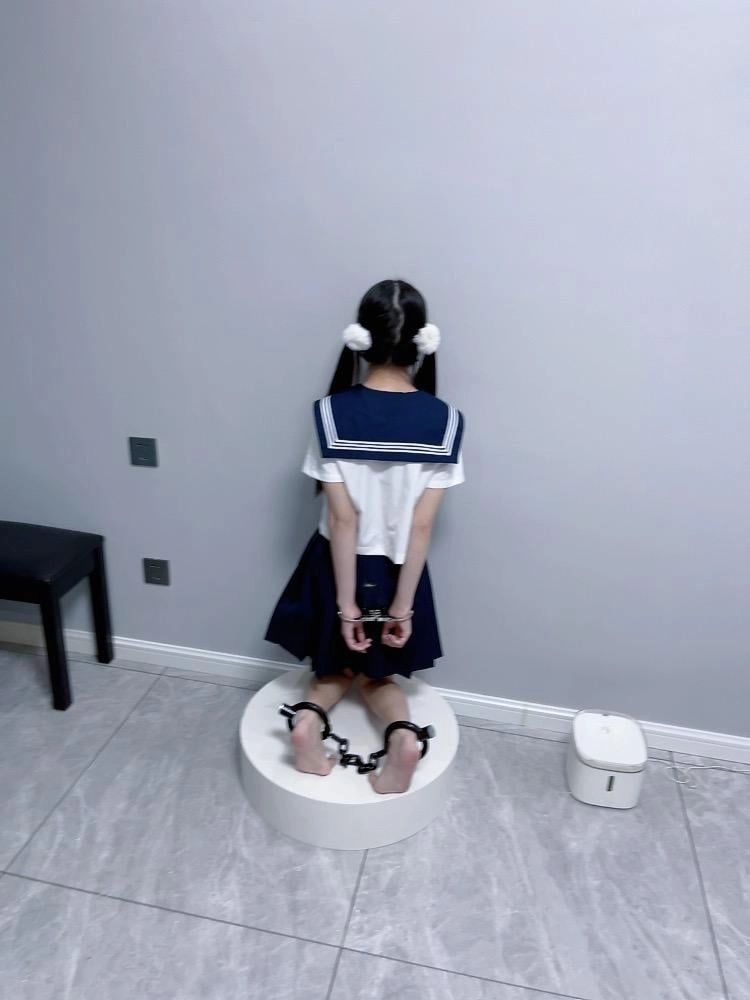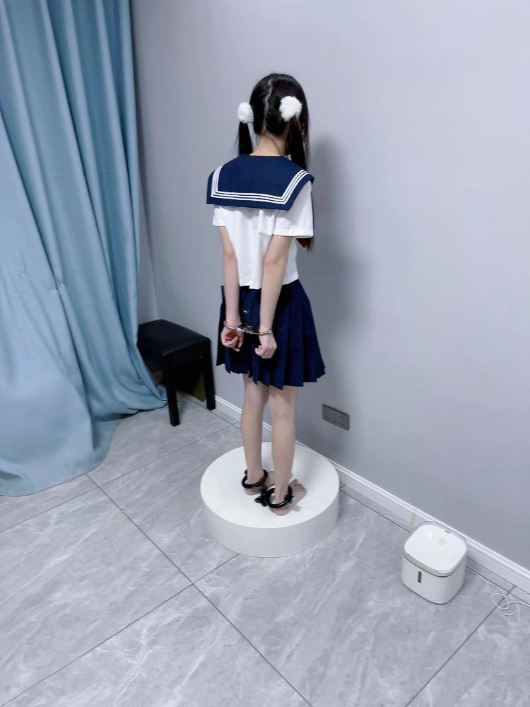 【咕咕精】双马尾jk茶茶裸足自愿女囚体验-裸足镣铐展示、指令罚站罚跪训诫、踮脚尖罚站、戴镣走路(封死钥匙孔)