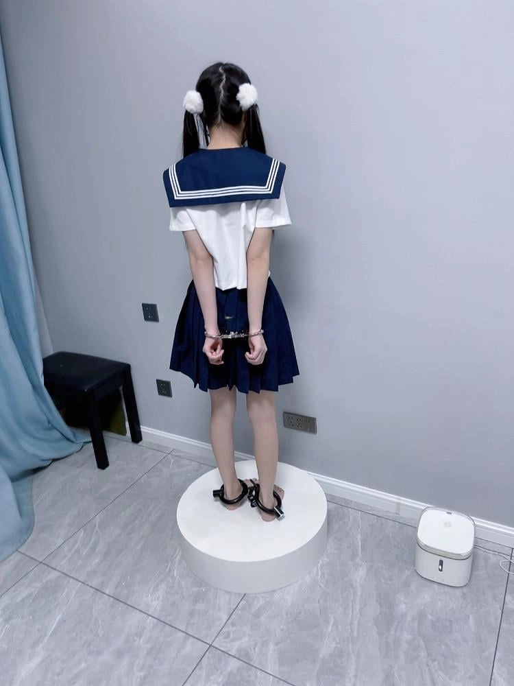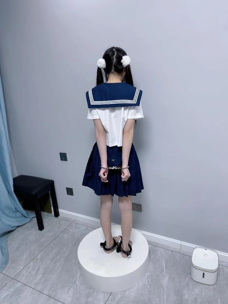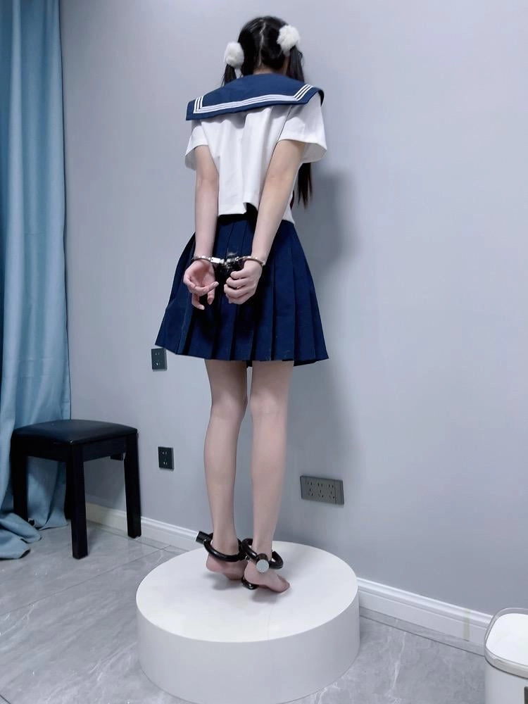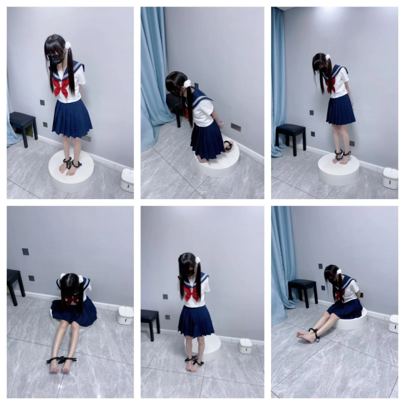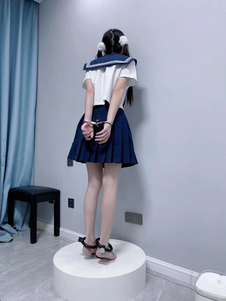 【咕咕精】双马尾jk茶茶裸足自愿女囚体验-裸足镣铐展示、指令罚站罚跪训诫、踮脚尖罚站、戴镣走路(封死钥匙孔)