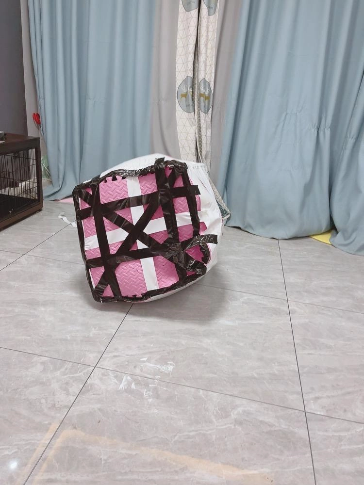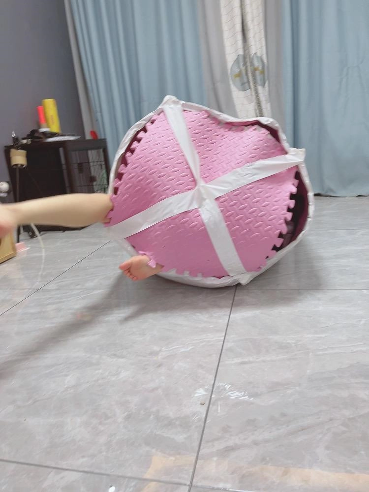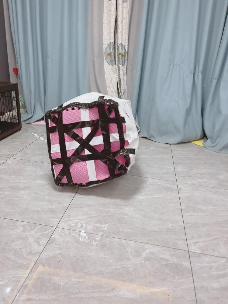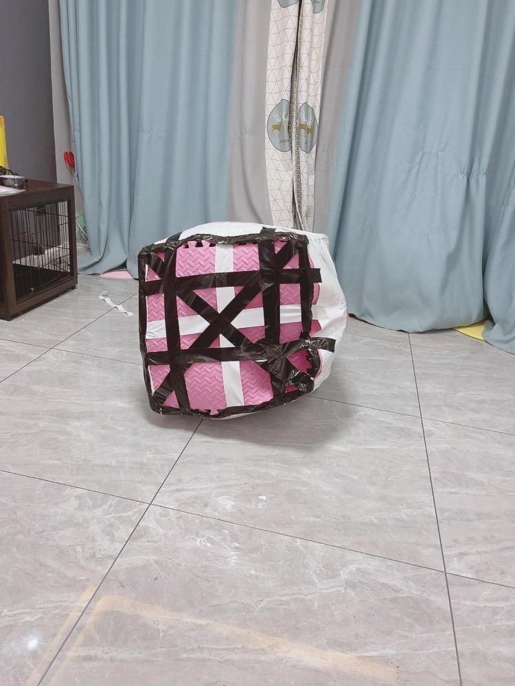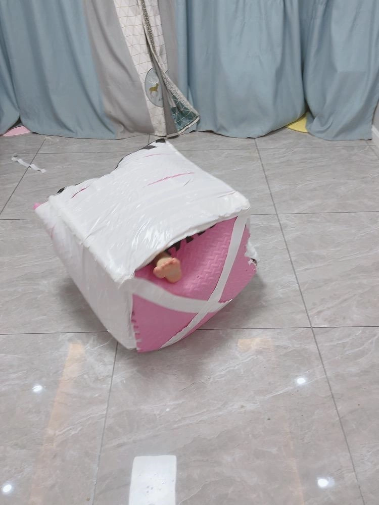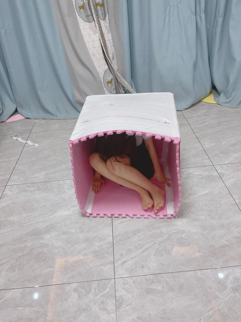 装箱脱出挑战又来啦!这次为了增加观赏性和互动性,选择了6块60厘米长的正方形软胶板,韧性更强,可以更直观的看出挣扎时凸出来的形状。