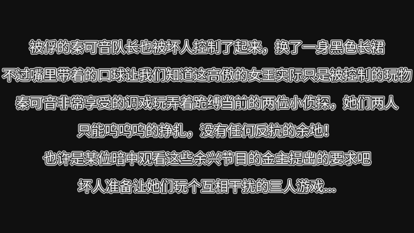 秦可音非常享受的调戏玩弄着跪缚当前的两位小侦探,她们两人
