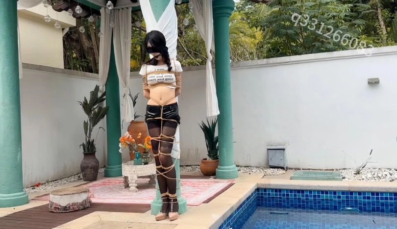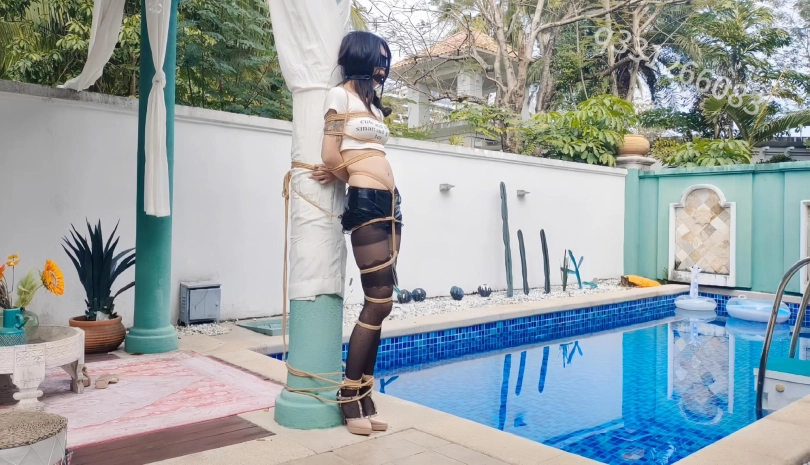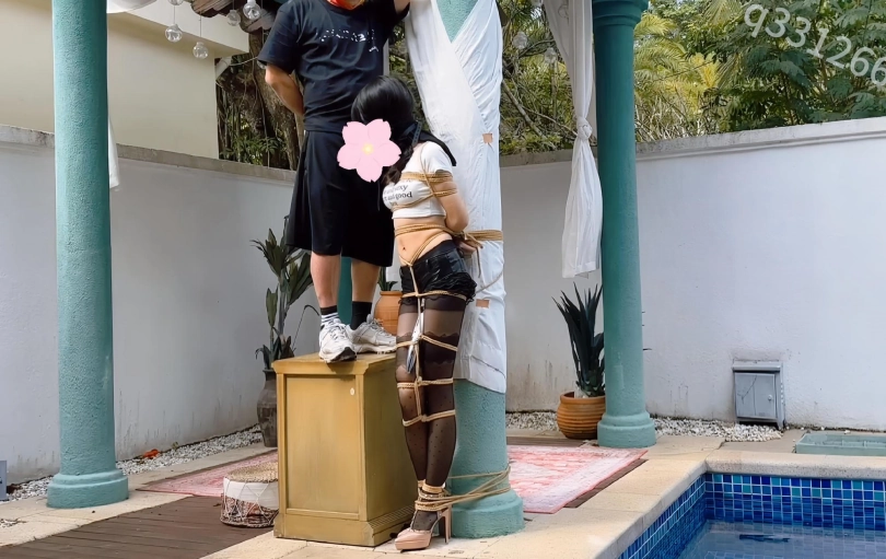 性感无比的黑丝高跟m被捆在某个别墅的院子里的柱子上,由于被高跟罚站无法动弹,只能扭动屁股,玩具,口球,蒙眼,的加持下只能扭动屁股,任由口水滴落,白天中感受周围的一片漆黑!!!最终,s是肯定会把持不住的,端来一张桌子,找到了m的跟前,解开口球,端起她的头部,准备开火!
