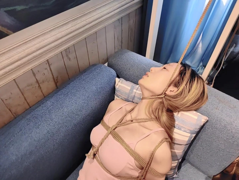 先是用绳子日式紧缚绑住上小钰半身,然后分别绑大腿小腿和脚踝。捆绑的非常严密,全身一动也不能动,非常难受。模特被放置在沙发上不停地挣扎呻 吟。放置一小会之后又在大腿根绑上了仙女棒不停震动。小钰挣扎呻吟的实在不行了,最后在迷迷糊糊里被反复吊脖子,[X_X]绞刑。直到最后承受不住去了。
