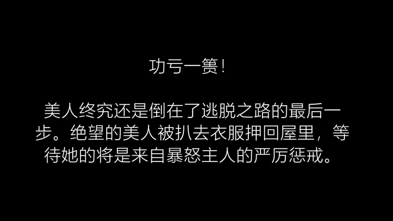 然而当女奴准备离开时,却正好碰到返回的主人。女奴惊骇异常,主人十分气愤。主人将女奴压住,一边厉声训斥,一边扒去女奴的外衣。