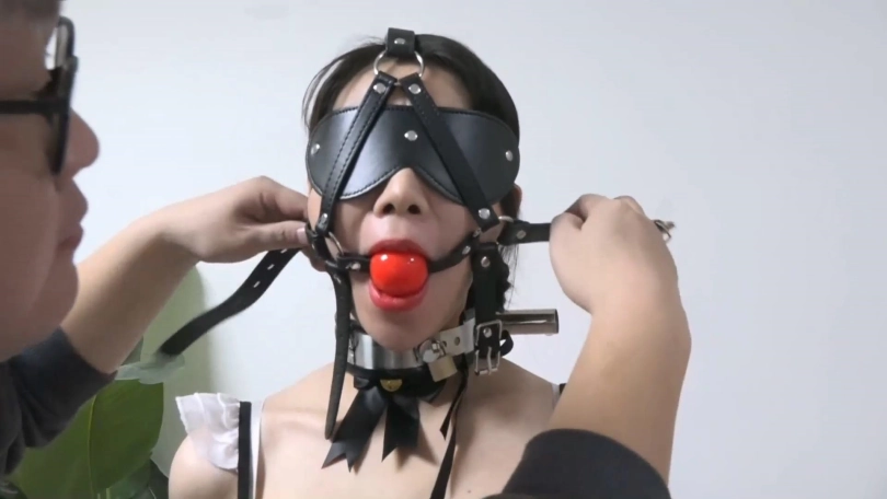 女奴乖乖站好,配合主人捆绑,又主动要求戴上眼罩和马具式口球。女奴的顺从让主人非常开心,警惕心完全丧失。捆好后,主人玩弄了一会女奴便放心走了。
