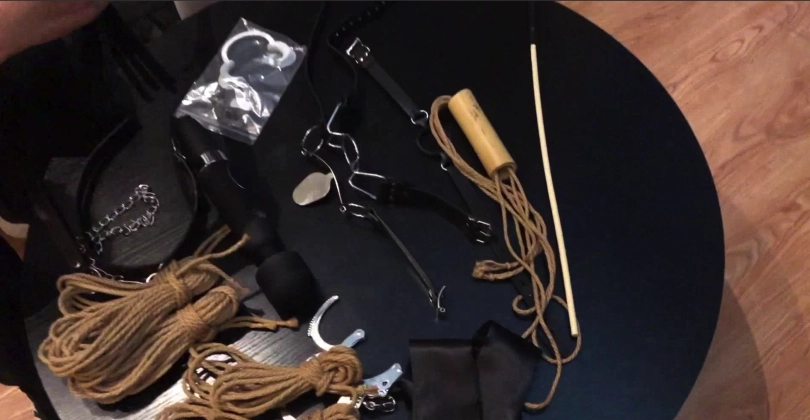 悠悠SM道具课堂!!开课啦!!AV片中才能看见的道具#散鞭#藤条#手铐#按摩棒#项圈#多达4种开口器#