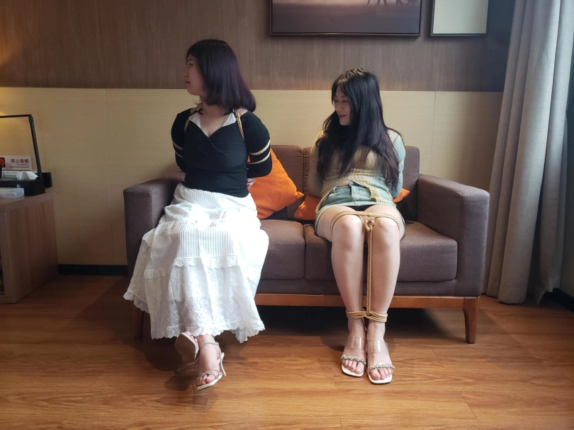 小月带着闺蜜一起来体验绳艺,过来之前没有跟闺蜜说要被绑起来,闺蜜刚进门看到绳子就懵了还有点慌,被绑起来还经常用方言吐槽。哈哈!