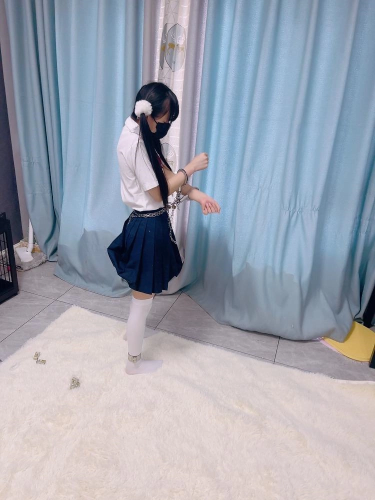 【咕咕精】茶茶女囚体验5-双马尾白丝萝莉佩戴镣铐展示+铁链股绳连接手铐
