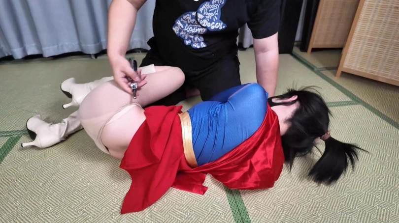 嗷嗷是一位热衷于cos女超人的女生,某天回家的路上被坏人盯上,坏人因为报复不了真的女超人,于是只能报复cos女超人的女生,嗷嗷不幸被绑回家,并进行了一系列的玩弄,最终并处以绞刑,坏人将嗷嗷抛尸楼道。