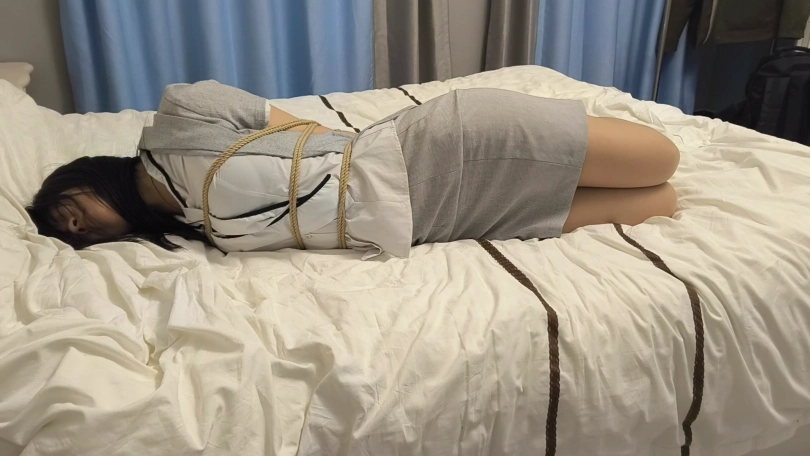 【美束映画】肉丝制服美女如入室小贼绑架,欧式直臂驷马镣铐捆绑。