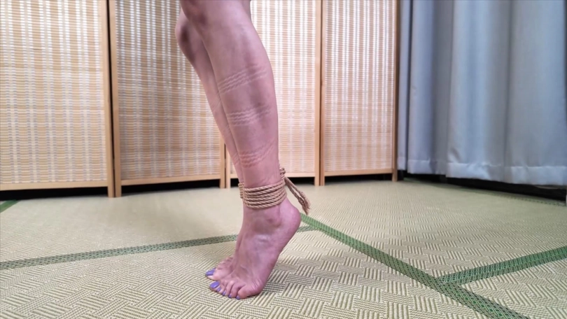3.上身日式后手缚,骑在竹竿上,踮脚再把双脚绑在一起,乳夹伺候