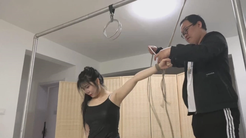 女主吴晗 服装 紧身裙黑丝 黑高跟 发型后高尾 捆绑的时候都用三排绳绑!一定整齐美观!拍摄时一定前后左右,全方位,都拍拍不完固定镜头拍摄!