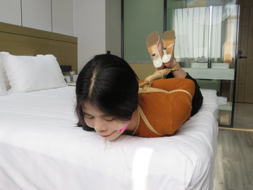 安然龟甲五花驷马,这妹子耐受力太好了,每次绑起来都想着虐虐她,口球用绳子勒住跟脚绑一起,再用扎带把脚拇指扎起来,最后快给她解开的时候还给她脚底放松一下,她哇哇叫个不停,这妹子非常怕痒痒