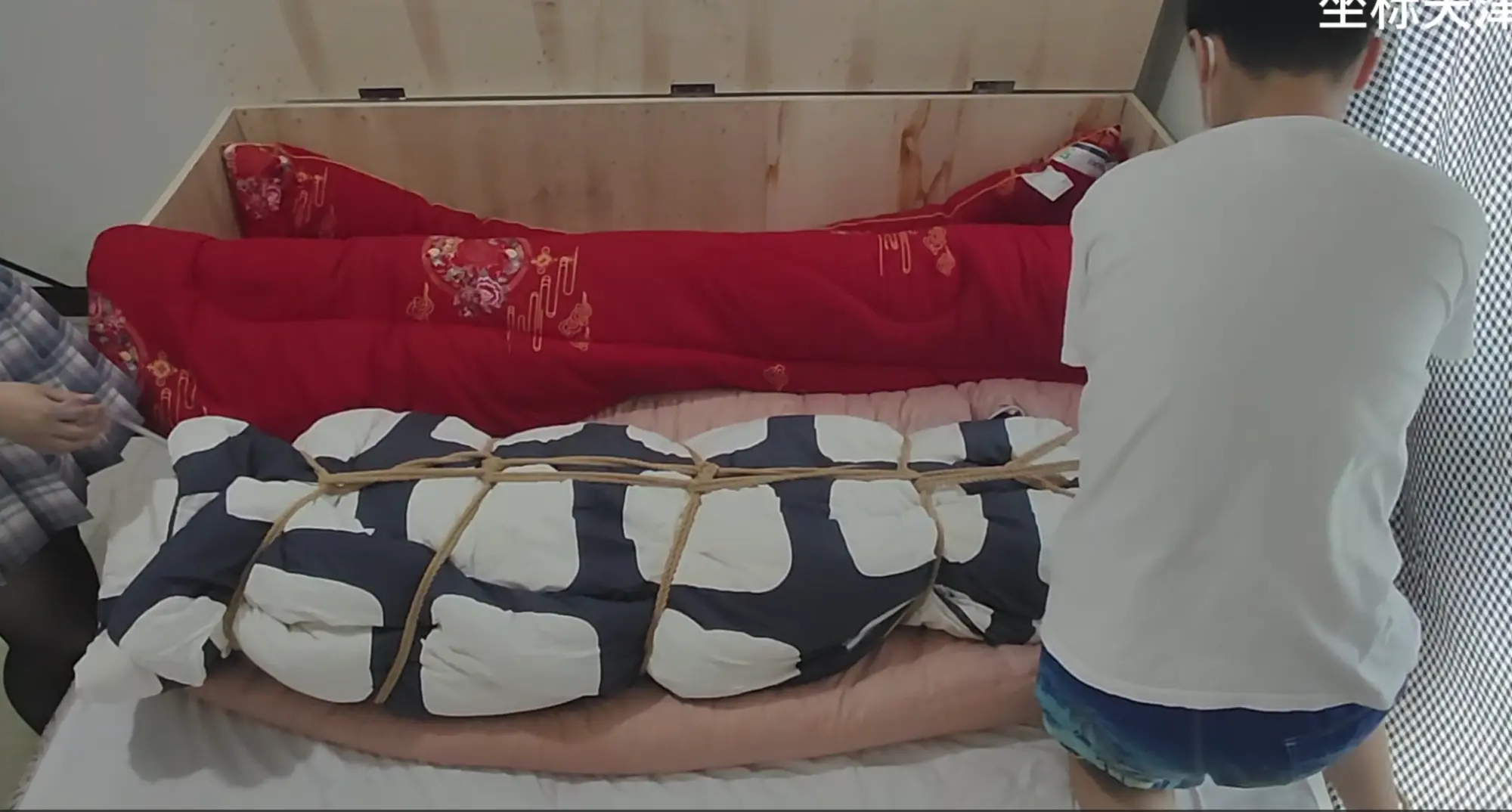 【津缚】【粉丝体验-第四集】棉被包裹+[X_X]+多层棉被装箱~