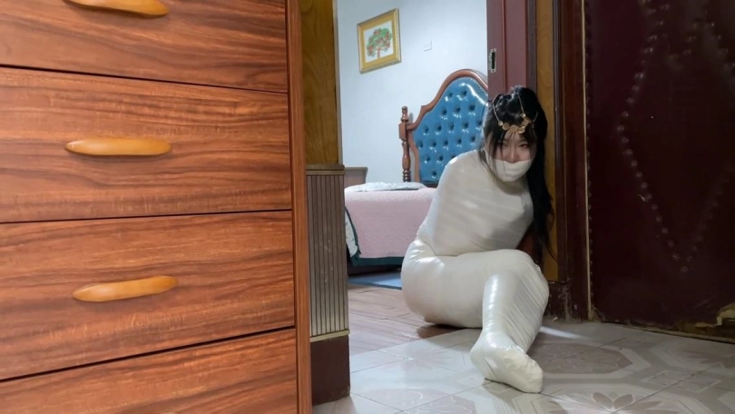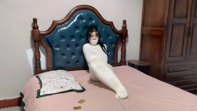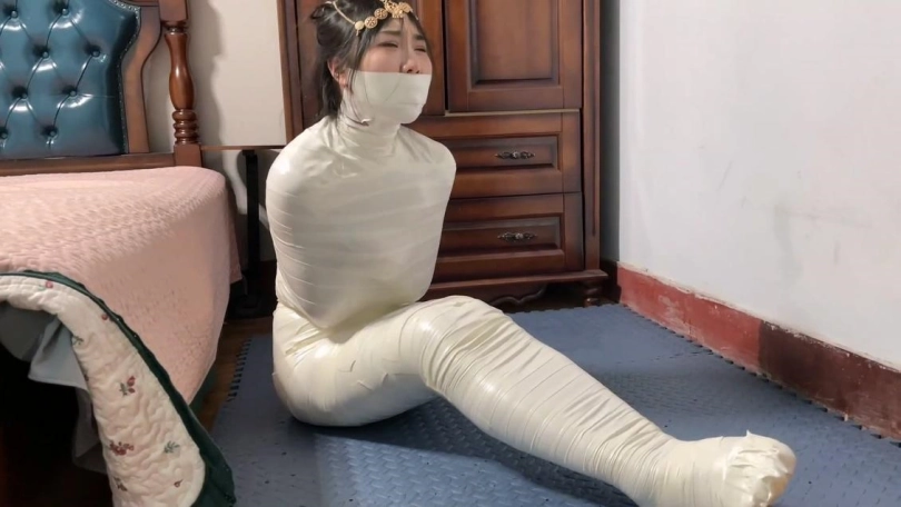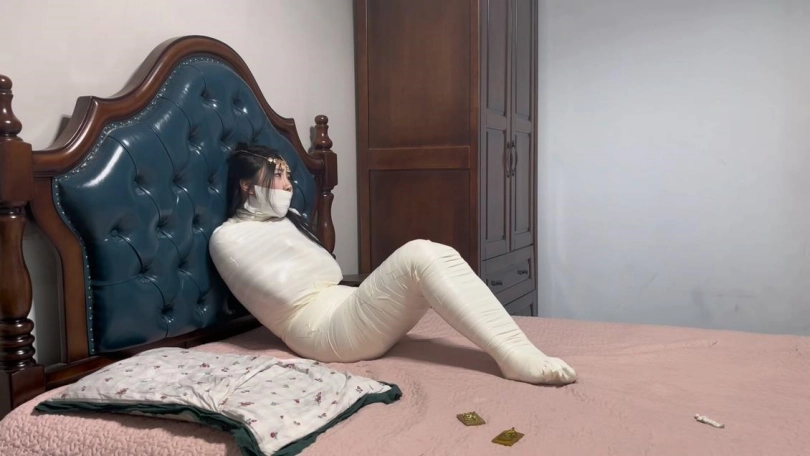 其实我也拍摄了很多木乃伊定拍,但一直感觉包裹的不够完美,寻找了很多包裹材料,终于发现一种价格很高的泡沫胶带,但包裹起来非常好看,严密紧身密封,还可以允许美女大幅度挣扎表演。希望大家喜欢。。吴晗看弹幕提示试着用剪刀剪开。吴晗在床上找到剪刀,但她试着蠕动手部,但一番尝试手部只能在内部蠕动根本挣脱不开。