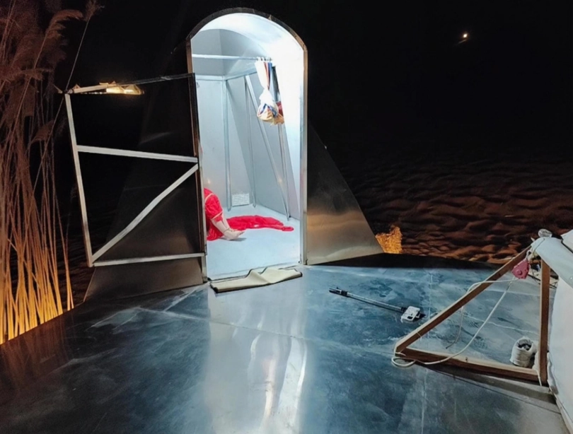 半夜醒来,帐篷在弥漫着一片哭声,突然被惊醒的游客出门查看,一位穿着红色衣服的女子现在黄沙里面一动不动,然后,然后突然就自动到了帐篷门口。正巧不巧,这个游客是一个妥妥的抖s,那管他什么鬼不鬼的,只要是女的都不会放过,赶紧冲到帐篷把拿出绳子开始抓鬼,三五分钟的时间,就把红衣女鬼捆了起来,然后扛到了帐篷外的公共卫生间,接下来的操作可能让这位红衣女鬼都怕了也许终生难忘,下辈子都不像做一名枯魂野鬼了!!!