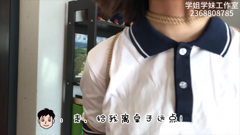 雨晗和怪大叔是好朋友,经常在一起玩耍。最近雨晗快高考了,学习很忙,很久没和怪大叔一起玩了。这个周末雨晗的学校终于放假了,怪大叔邀请雨晗来自己家里玩。可是雨晗来到怪大叔的家里后却只想学习,一个人看起了笔记,完全不理怪大叔。于是怪大叔把雨晗五花大绑了起来,雨晗却戴着脚镣又走回书桌看起了书。大叔又把雨晗的腿紧紧地绑了起来,最终雨晗疼得受不了了,答应不再学习,好好陪怪大叔玩,怪大叔才给雨晗松绑。