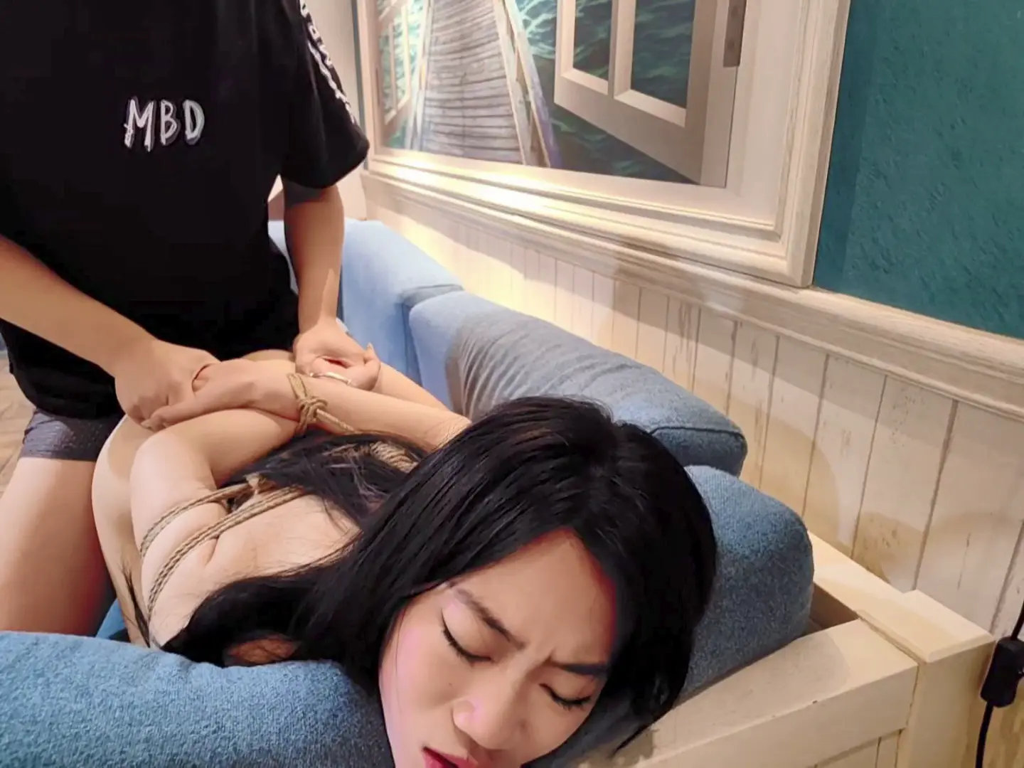 【缚仙】《背德人妻》第二集 凡凡只戴胸贴黑丝被紧缚 后入调教