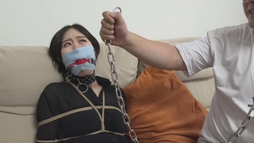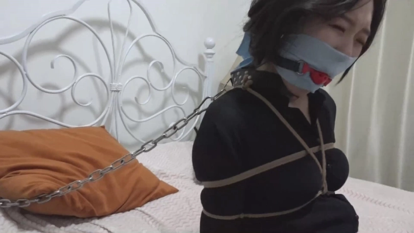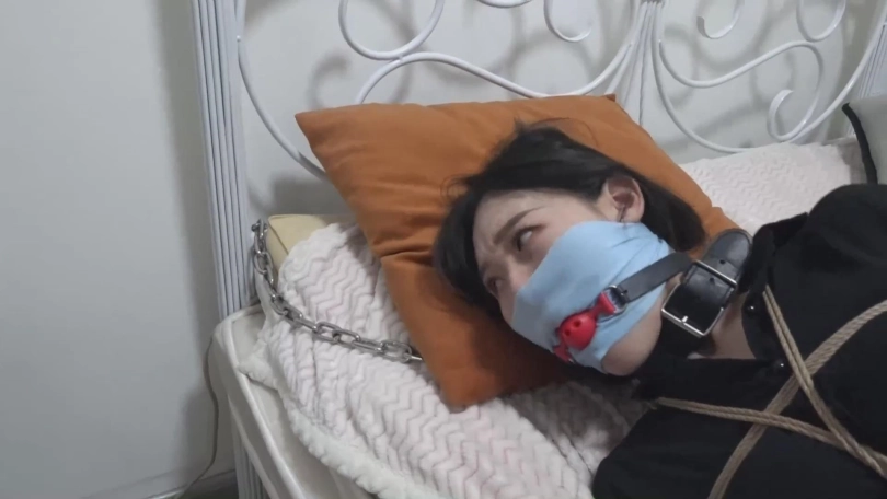 好心的我重新给她做了消音服务并且用项圈把她栓在床上,