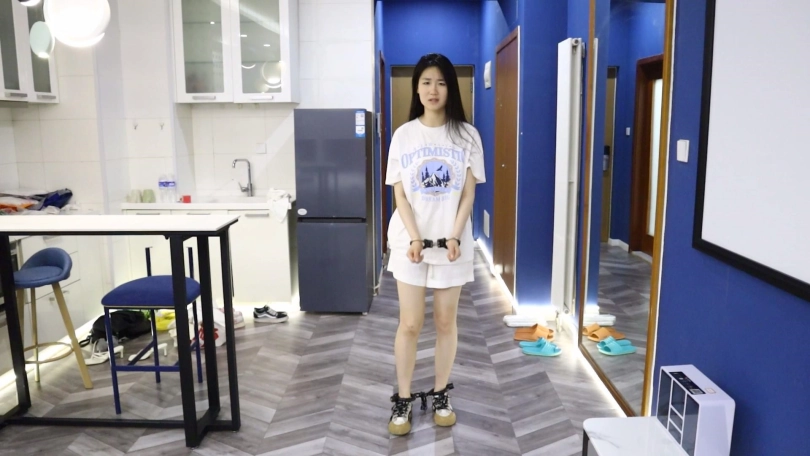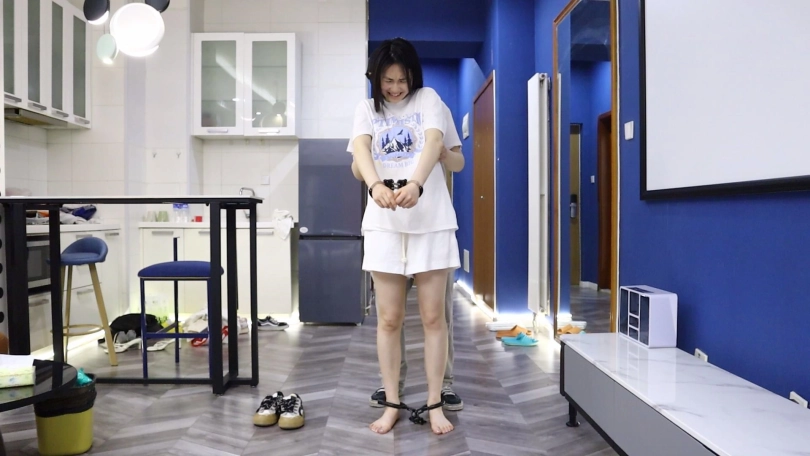 【趾间艺束】销售员彤彤工作时 涉嫌诈骗被捕 镣铐审讯 挠脚挠全身TK 手铐脚铐脚趾铐 打工人千万不要误入歧途哦!!!超可爱的乖巧表演系妹子!!!