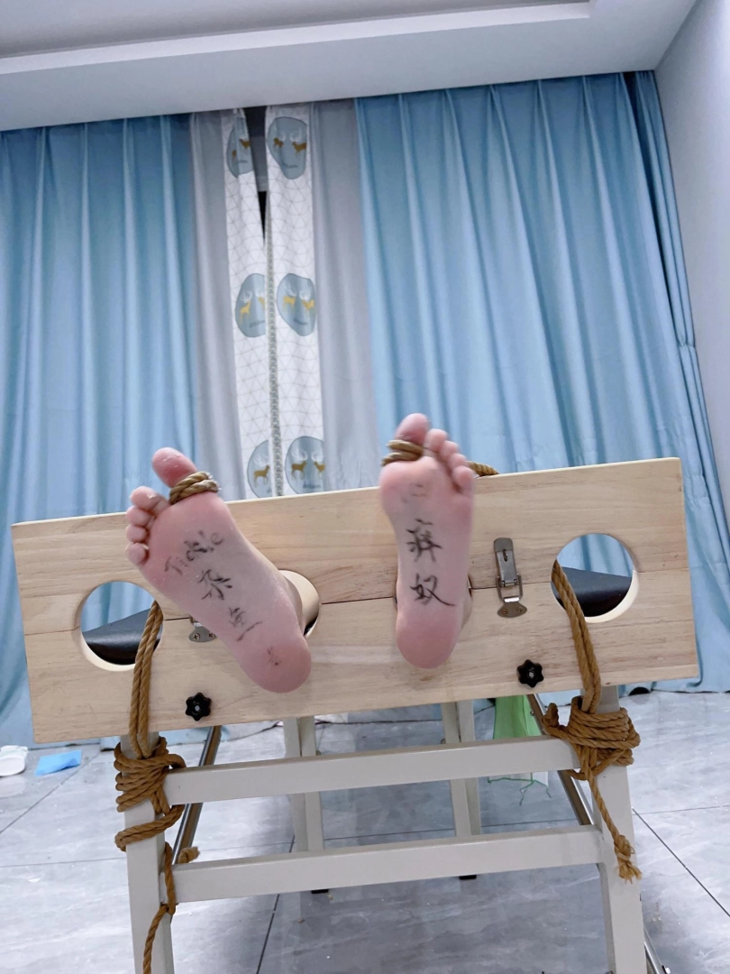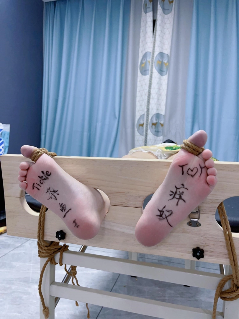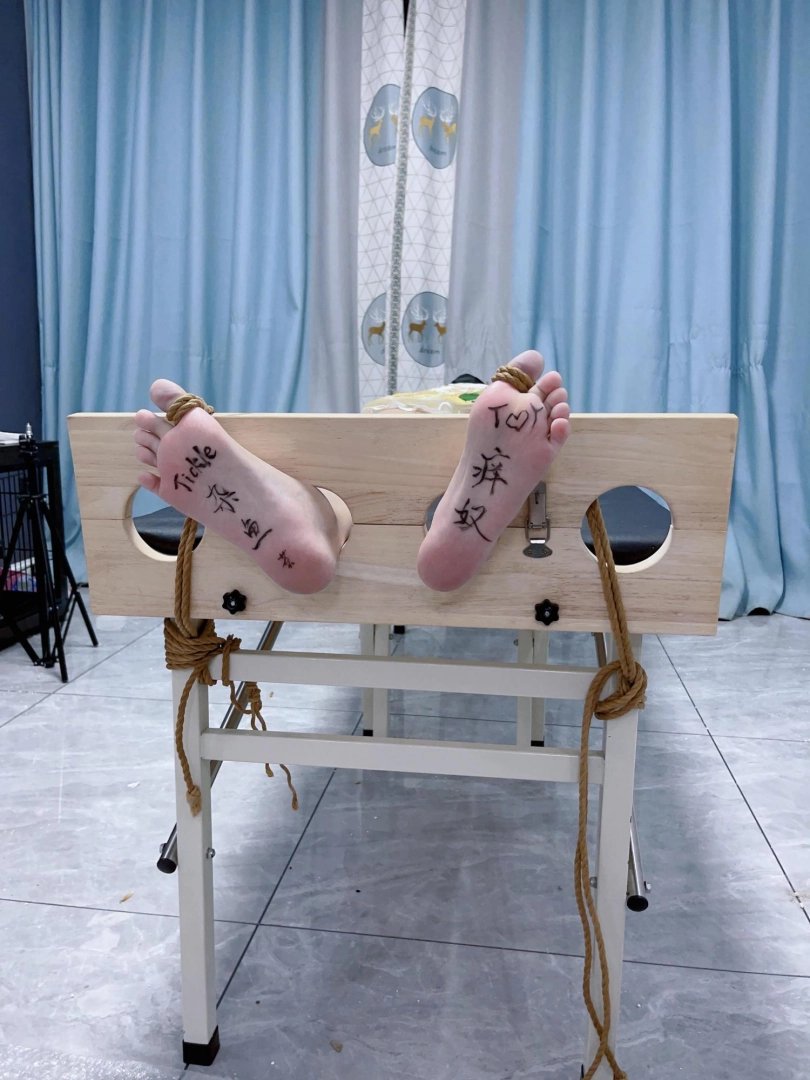 姿势:痒刑床+足枷(一定要固定脚趾)