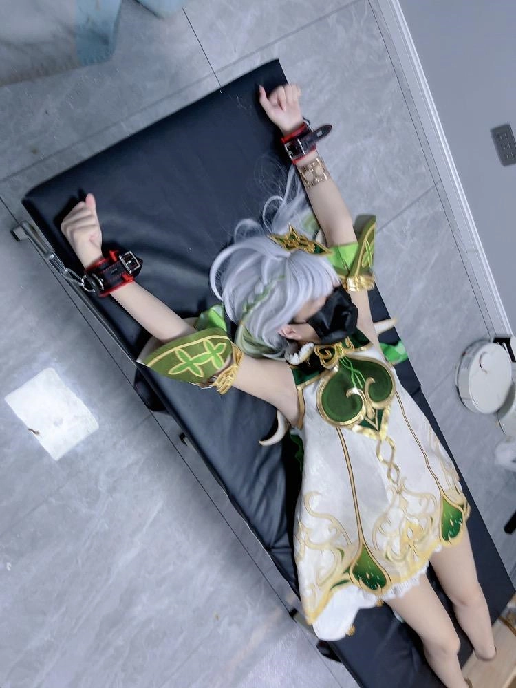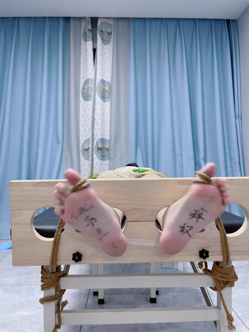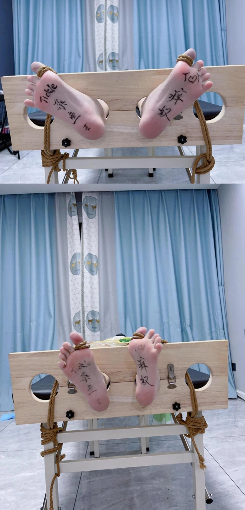 内容:先让茶茶穿着小草神纳西妲的cos服固定在痒刑床上,足枷锁好后用绳子固定好脚趾禁止乱动一丝一毫,然后在脚底写上羞耻的文字(杂鱼痒奴)(Tickle Toy)。