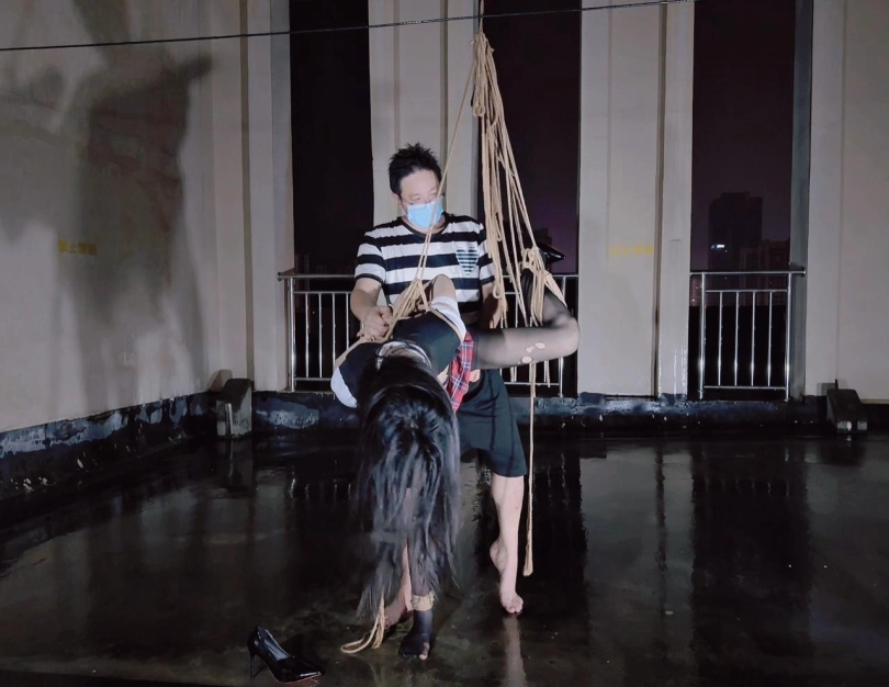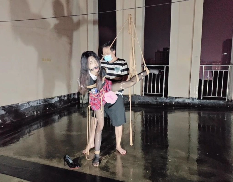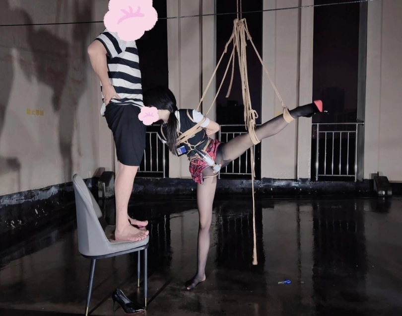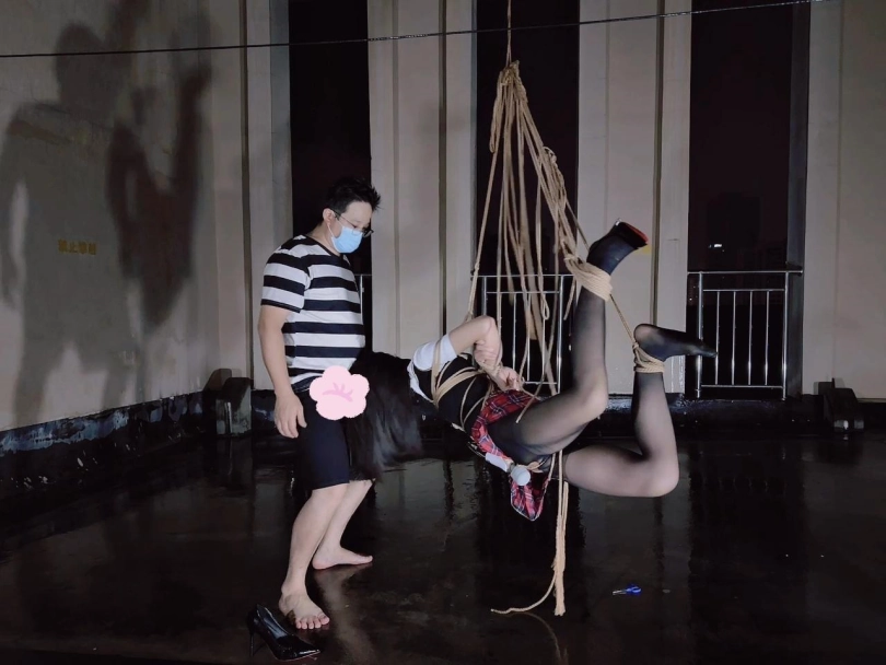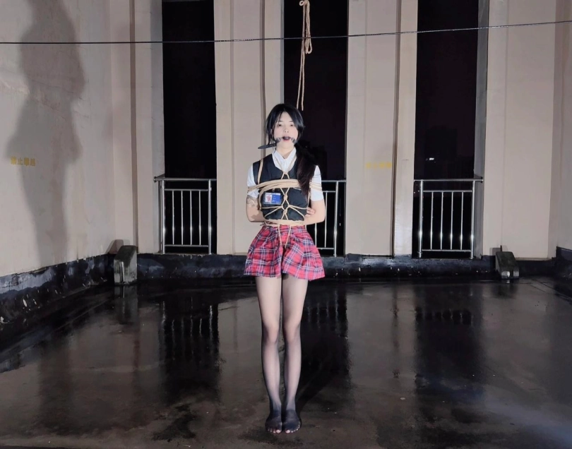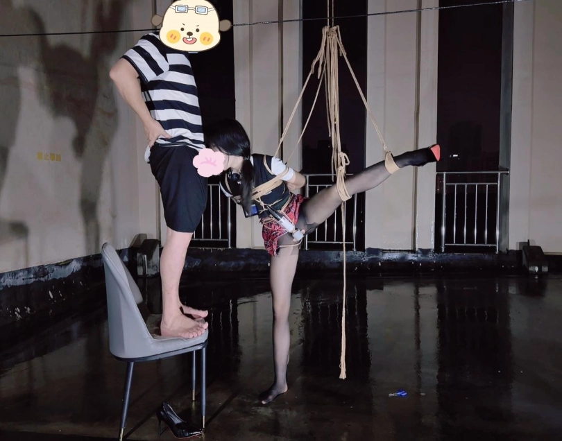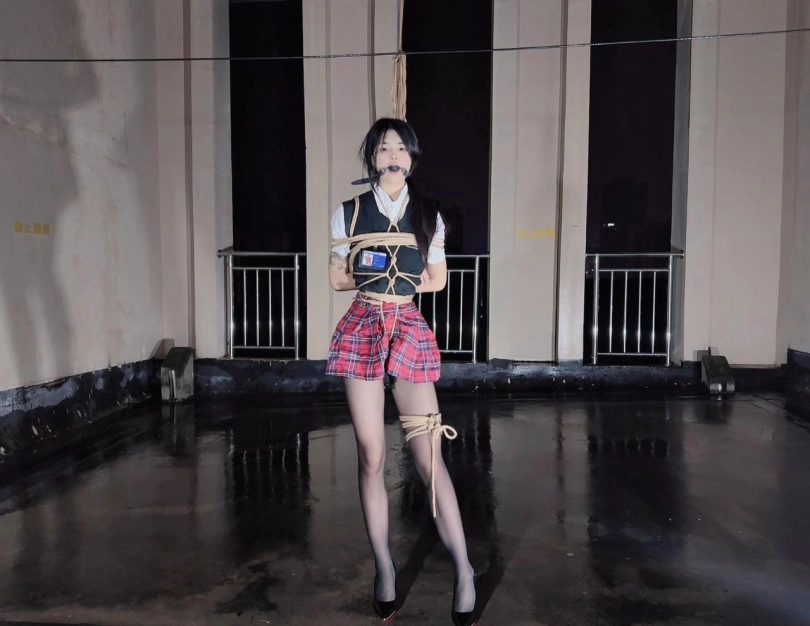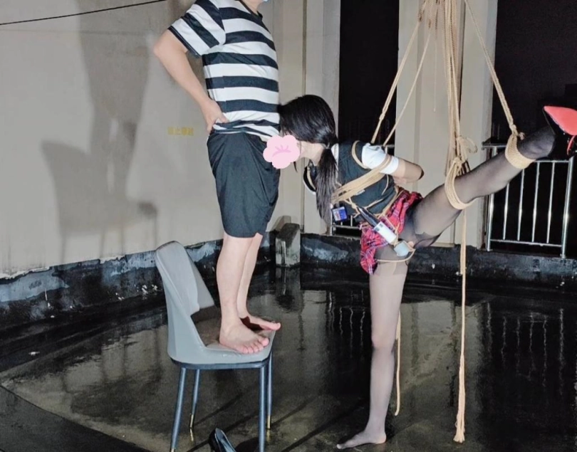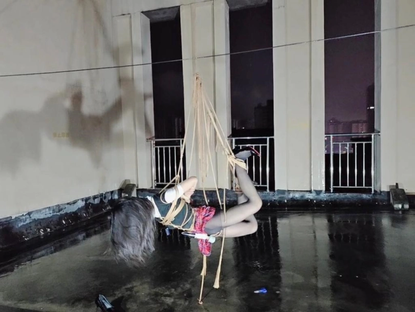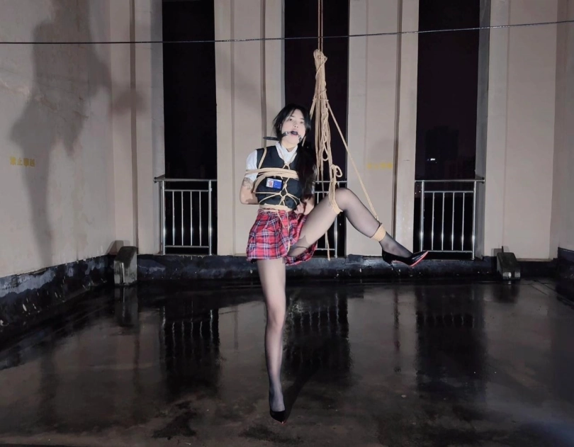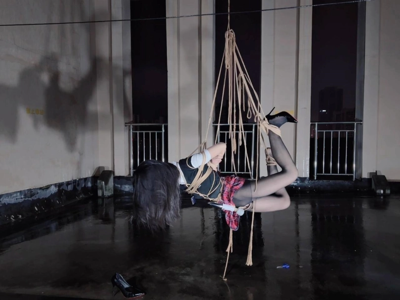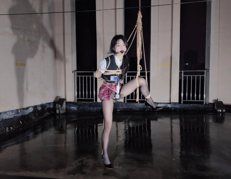 今晚的计划是天台吊缚强高,意外的是下雨了,打了两个外卖小哥的电话都不愿意送上天台,可以了他们的眼福,细高跟,单腿吊,悬空吊,空中口舌训练,其实最可怕的是单腿吊强高孤独放置,我也不知道他什么时候才会回来,反正放了好久好久好久,可以每次盼望回来的希望最终都是绝望的开始!!完事过后还是继续放置,淋雨到天亮。