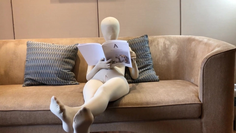 1.一位长腿软妹子将在家庭旅馆里被改造成一只活体全包娃娃。