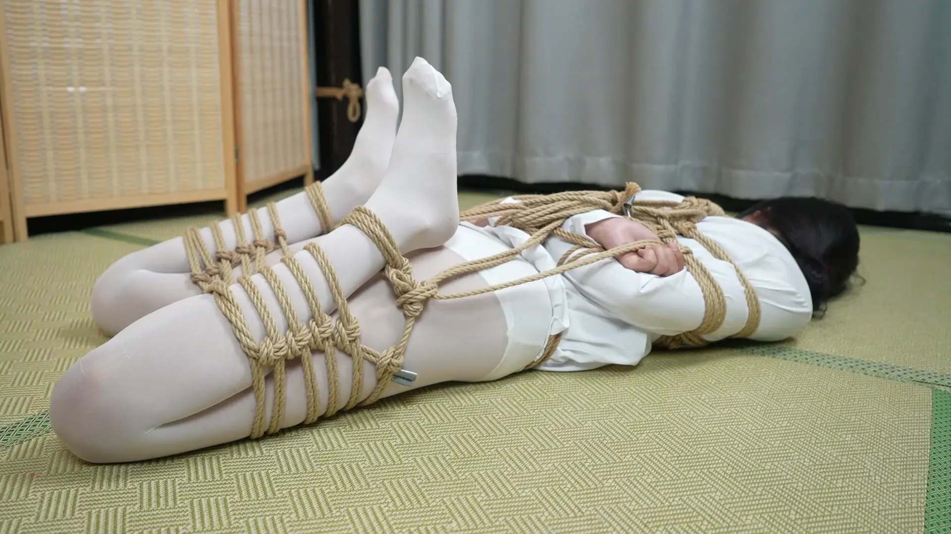 【渎竺】【朝朝】白丝麻绳折腿捆绑放置挣扎!肉色肌肉贴封嘴封眼!