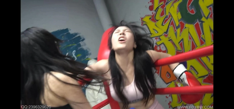 两个美女拳手争夺女王称号大打出手,用各种方法蹂躏对方,摆出各种羞耻姿势,最终粉衣美女战败倒地昏迷不醒。