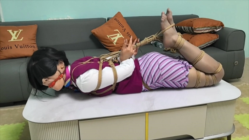 房东捆好后开始玩弄丝足,玩的正起劲接到领导电话要去加班。为了怕童谣逃跑,驷马绑在放置在桌子上,留下童谣独自挣扎。