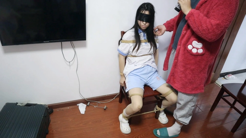 少女I的痛苦呻吟 牢牢的被绑在椅子上动弹不得,下面有玩具帮助震动,