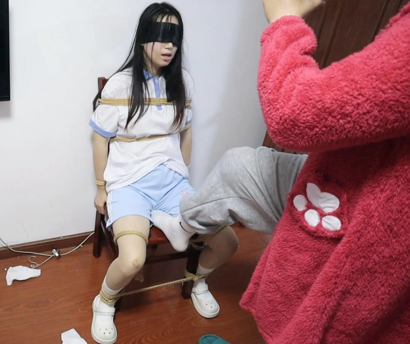 【荷仙少女】少女I的痛苦呻吟 牢牢的被绑在椅子上动弹不得,下面有玩具帮助 ,少女I(爱颖)被搞的一直娇喘不停,一脚踩下去娇喘更大了期间主人又各种玩弄骚扰 tk鞭叫的更大声了