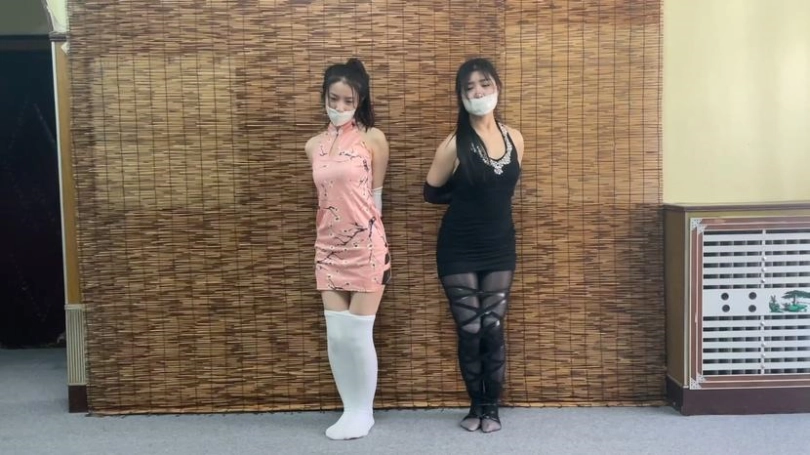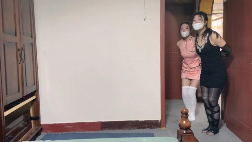 【逍遥】《自动拘束服装 下》美丽模特们被品牌的服装包裹 2个美女人棍想方设法在房间里逃跑挣脱 结果越挣扎捆绑越密集 却被抓来强制做服装展示