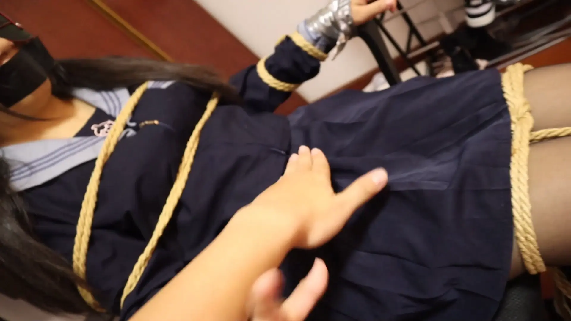 最喜欢的水手服 黑丝+白袜+亮皮鞋 多层胶带固定手,绳子捆绑固定全身,然后开始脱鞋把玩鞭打,少女A尖叫到求饶,不断摇头祈求