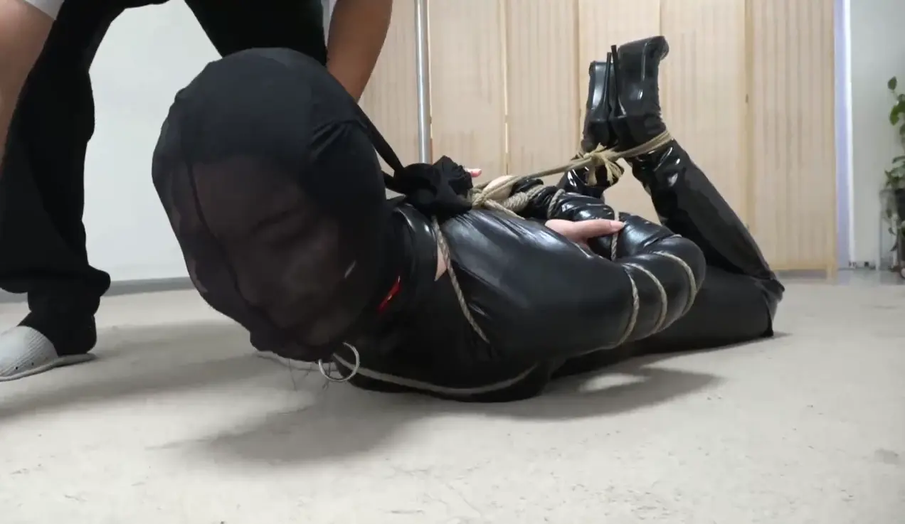 女贼被留在客厅独自挣扎,很快绑住脚踝的绳子就被弄松散开,但上身的拘束实在太紧,于是她决定在屋子里四处找找有没有能够帮助脱缚的东西。搜寻一番无果,女贼来到大门口碰碰运气,却正好遇到了回来的男主人,被拽着项圈押着人往回走去“还想跑?看来就是捆的不够严实啊 回去看我怎么收拾你!”最终我们可怜的吴晗被捆着押回了房间,这回她被捆了给严厉的驷马,口球上缠了几圈胶带,被丝袜蒙头,只能绝望的呜呜挣扎着...