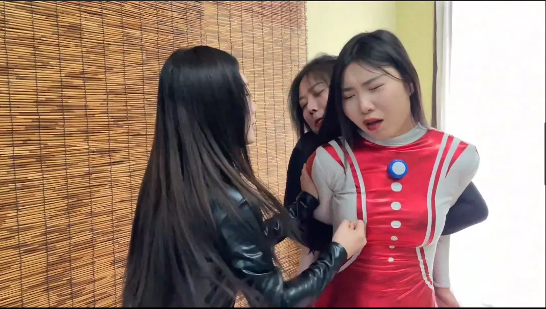 女奥特曼变身拯救世界与女怪兽战斗,终于困难战胜女怪兽,没想到新的女怪兽出现,本已经没有能量的奥特曼不敌,被迫变回原型,双女怪兽羞辱女奥特曼,女奥特曼为了再次变身与怪兽妥协,不得已脱下自己的丝袜,怪兽把白色液体吐在奥特曼的丝袜上,被迫奥特曼舔下,女奥特曼再次变身,却已经不是两位怪兽的对手,怪兽骑在奥特曼身上拿出武器桶向奥特曼的后T.