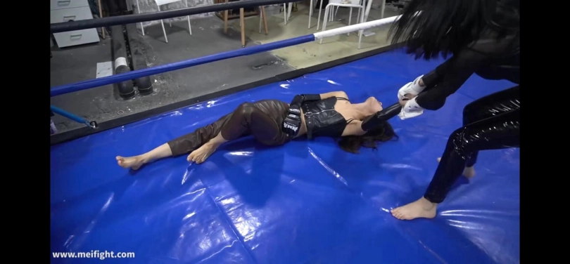 两个皮衣美女大打出手,用各种方法蹂躏对方,摆出各种羞耻姿势让人欲罢不能,最终应一个美女战败彻底失去意识。