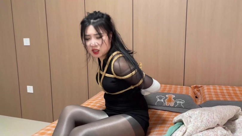性感租客被大房子诱惑,低价入住了房子,但半夜醒来却发现自己被捆绑了,手臂也被绷带包裹成了球,她一番挣扎没法挣脱,她来到客厅发现了自己的手机,就在她要求救时美女被粘液滑倒了,脚上沾满了粘液根本没法站起来,而且越挣扎粘液越多,这时房东出现原来这一切都是个陷阱,房东不停的往美女腿上涂抹更多的粘液,并且用粘液封死了美女的嘴巴,美女满腿都粘液根本没法站起来,她磨蹭想脱下丝袜也没有办法做到。不停蠕动的丝袜脚和美腿全是油光粘液~