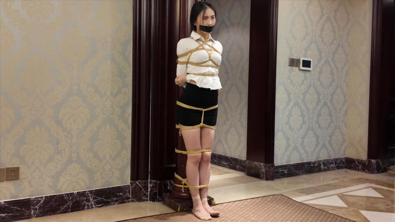 昏迷的凯丽苏醒过来,发现自己被结结实实地绑在一根柱子上,嘴也被胶带封住,于是开始挣扎,挣扎一段时间后,看到头目出现,不屑地扭过头,头目看着被抓的凯丽很是得意,撕掉凯丽的胶带以后,先是嘲讽了她几句,最后让凯丽屈服她,凯丽不屑地回应头目与其浪费时间还不如杀了她,头目于是开始对凯丽进行鞭打,没想到凯丽没有一点屈服样子,于是开始从生理心理上开始折磨凯丽,不停地对凯丽上下其手,凯丽一边挣扎着,一边痛骂头目,头目见这么久凯丽都没有屈服,于是给了凯丽几下重击,接着对凯丽说需要换更有趣的手段让凯丽屈服了,于是再次迷晕了凯丽。