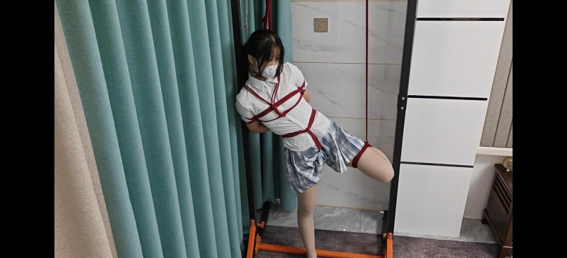 18岁新模特第二次拍摄,清纯可爱,剧情是被单腿吊起来,被tk+塞td,妹子躲闪无用,被无限折磨至哭