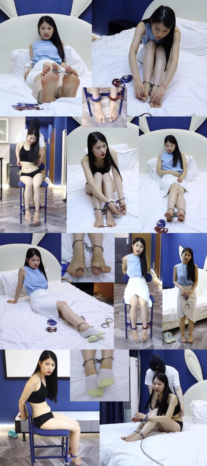 【趾间艺束】冷兮家中内衣自缚解不开 被男友发现 长期囚禁 挠脚挠全身TK 手铐脚铐脚趾铐