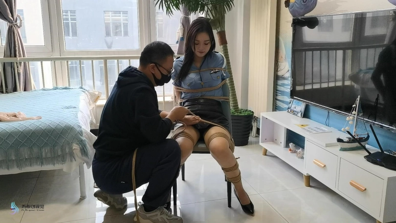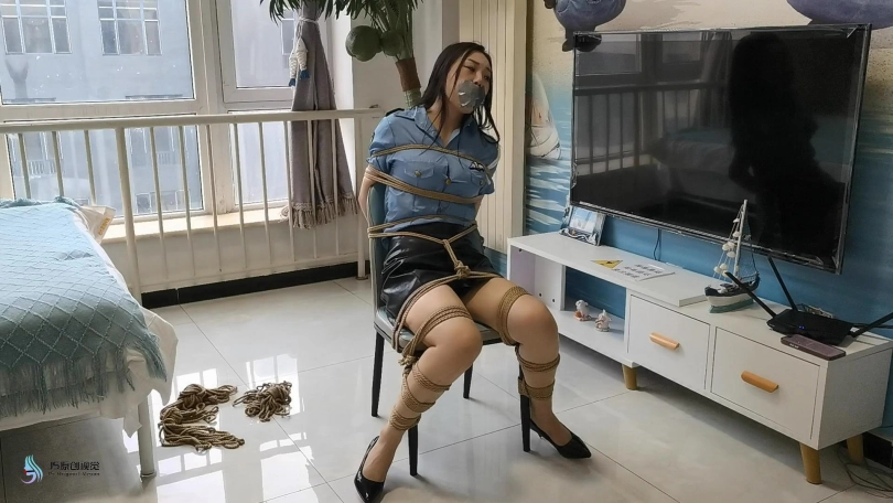 【JS】【哈妮】《母子游戏》美女J官答应和儿子玩J匪游戏,绑上后却出去玩,留下妈妈独自挣扎