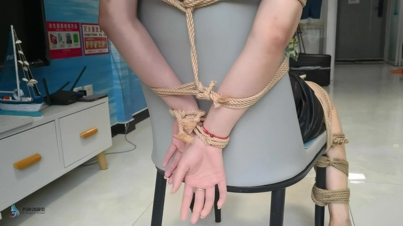 进了书房儿子把妈妈放置在提前准备好的椅子上,然后拿出事先准备好的绳子准备绑妈妈;妈妈一看吓了一跳,问儿子:“有必要演的这么真实吗?”儿子说好不容易跟妈妈玩游戏,就答应他这一次吧,妈妈一想到最近确实有些亏待儿子,纠结了一下还是同意了。儿子把妈妈的双手拉到椅子背后交叉、捆绑手腕、然后把捆绑妈妈的胸、腰,使其彻底固定在椅子上(期间妈妈有简单挣扎,并发出些声音,来点画外音,说儿子绑的比自己想象的专业多了,快赶上J队训练了),妈妈感觉事情不太对劲,就问儿子:“你这小家伙,这捆绑是在哪学的?”,儿子说就是瞎绑着玩的,看电视上有样学样,妈妈也没再纠结,本来想让儿子差不多得了,没想到儿子突然掀开妈妈的裙子,妈妈惊吓之余赶紧收紧双腿、优先生气的问儿子到底要干嘛?儿子说腿还没有绑呢,但妈妈疑惑到为什么要掀裙子,儿子解释到是因为要脱掉妈妈的丝袜、这样好绑,妈妈觉得有点奇怪,但儿子不耐烦说妈妈现在是人质,不要那么多问题,直接上手开始脱妈妈的丝袜,脱到脚的时候取下了妈妈的高跟鞋,还顺便挠了挠脚心,让妈妈笑了几声,然后觉得差不多了就重新给妈妈穿上了高跟鞋,继续把妈妈的双腿掰开准备绑腿和脚。妈妈感觉这样一来内裤就暴露出来了,就羞耻的问儿子:“这样妈妈也会不好意思的,能不能换个绑法?”,儿子却说这样绑人质不容易逃走,妈妈疑惑到这小家伙怎么懂这么多(画外音)。只见儿子分别把妈妈的两个腿靠在两个椅子腿上,然后在膝盖下侧、小腿和脚踝处都和椅子腿绑在一起,最后两个大腿又和椅子坐缠了几圈,这下子妈妈彻底和椅子融为一体。