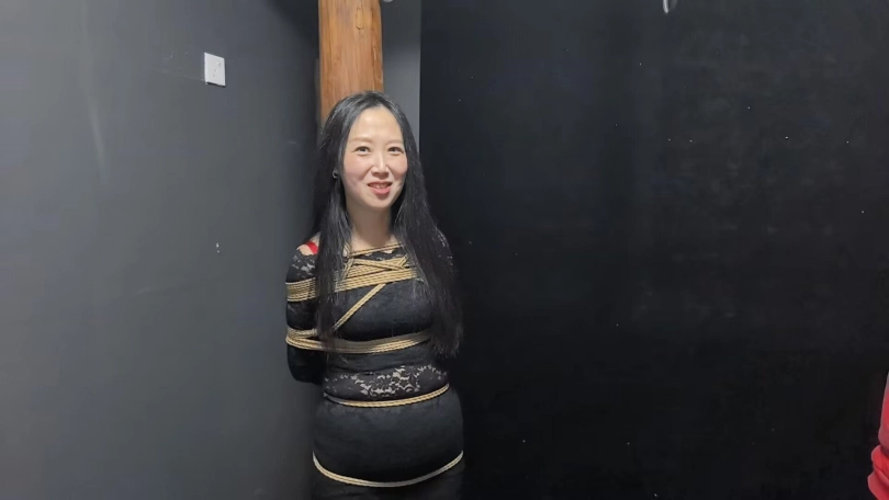 除了挣扎剧烈外,拍摄结束后,依照惯例对模特文清进行了采访,值得注意的是被绑在柱子上进行的采访,看截图中文清的笑容,就知道访谈效果很好,问题分别为: